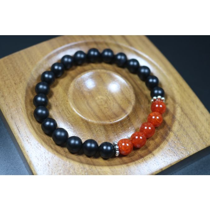 8mm beads-Anxiety Relief Bracelet - Matte Black Onyx with Orange dragon agate Bracelet - Lucky Bracelet - Popular Gift