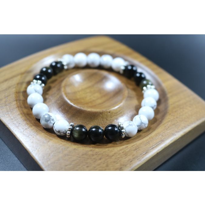 8mm beads-Howlite and Black Obsidian Bracelet - Stretch Bracelet - Gemstone Bracelet - Healing Bracelet