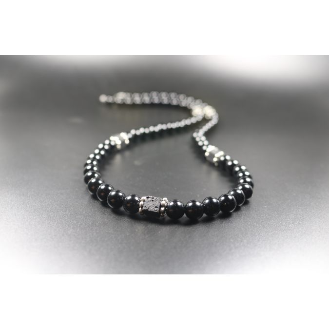 Black Obsidian with Cube Lava Balance Necklace, Mens Necklace, Womens Necklace, Stretch Necklace, Gemstone Necklace, Healing Necklace