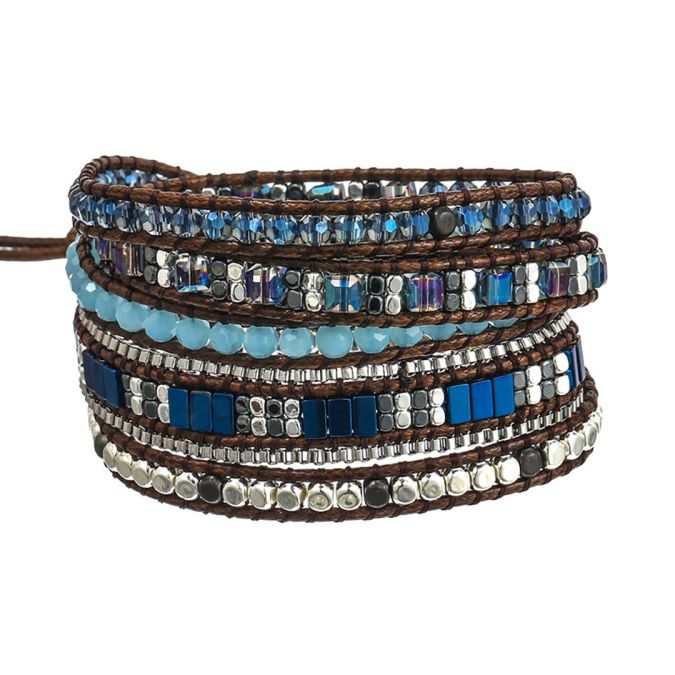 Elevate your style and energy with this Handmade Crystal & Hematite Blue Wrap Bracelet.