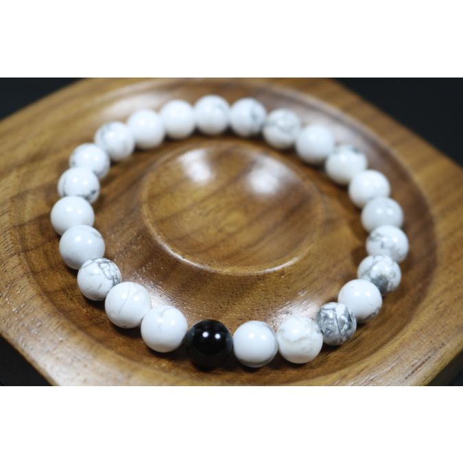 Howlite Bracelet, Mens Bracelet, Women Bracelet – Strengthens Ambition and Memory, Stretch Bracelet, 8mm beads