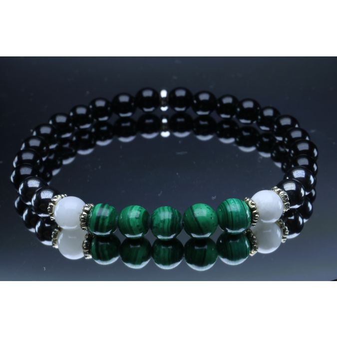 Malachite, Moonstone, Hematite & Black Tourmaline Bracelet (6mm Beads)/Powerful Protection, Emotional Balance, Heart Chakra, Well-Being