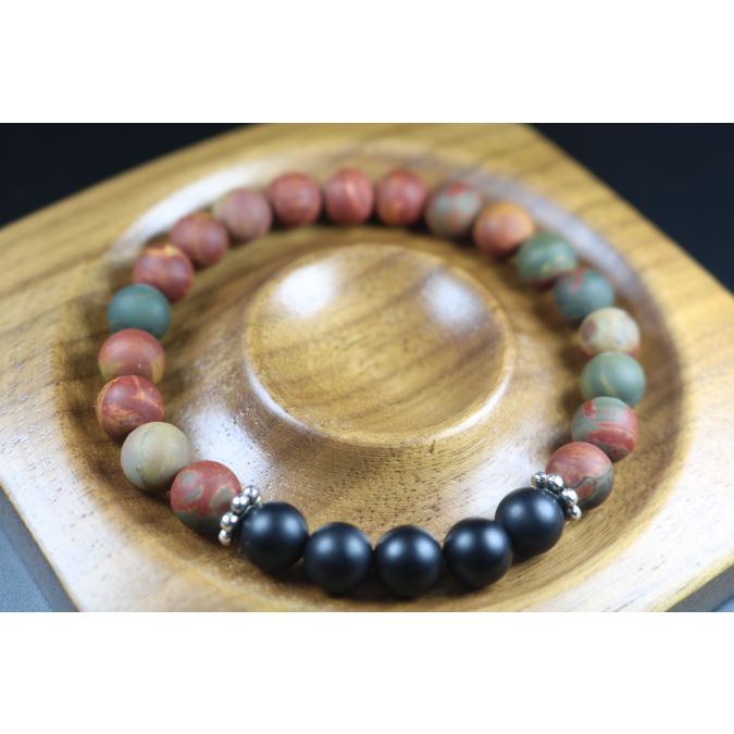 Matte Picasso and Matte Black Onyx Bracelet - - Heal Bracelet 8mm beads-Men Bracelet - Men Jewelry - Stretch Bracelet - Men Bead Bracelet