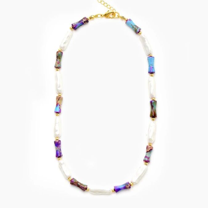 - Materials: Jasper, Freshwater Pearl, Gold Plated Alloy