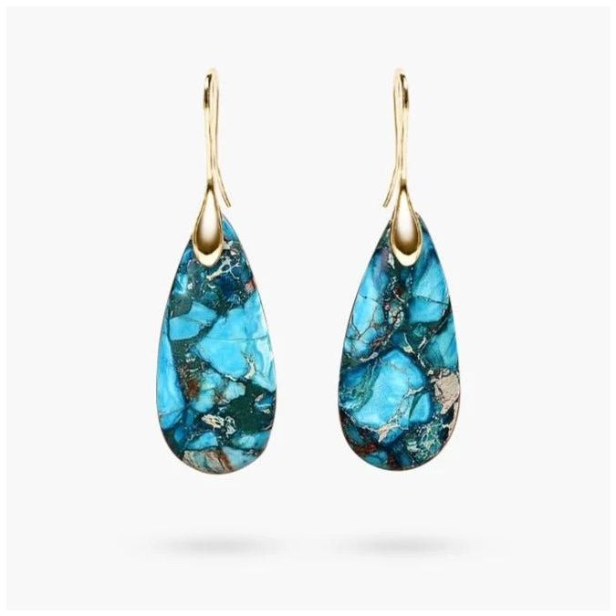 The Ocean Energy Protection Teardrop Earrings feature soothing Regalite stones, known for promoting strength, clarity, and emotional balance. Designed to ease stress and shield against negativity, these elegant earrings are both a stylish and protective accessory.